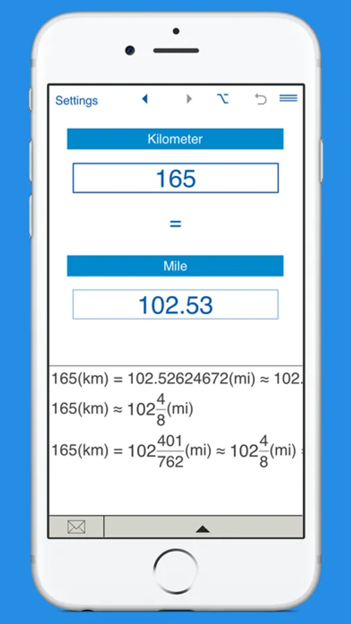 "Flip" button lets you easily switch between "Miles" and "Kilometers".
