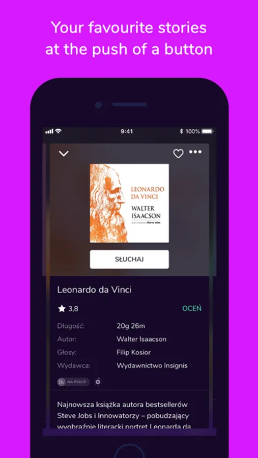 Audioteka is a free app, where you can download or listen to audiobooks directly from your device. We offer you a possibility to listen free chapters, buy, download and listen to bestsellers wherever you are. The app allows you to find thousands of audiobooks on Fiction, Non-fiction, Arts & Entertainment, Biography and Autobiography, Business, Children, Classics, Crime & Thrillers, Science - Fiction & Fantasy, Health & Personal Development, Young Adult, Podcasts & Newspapers and many more.