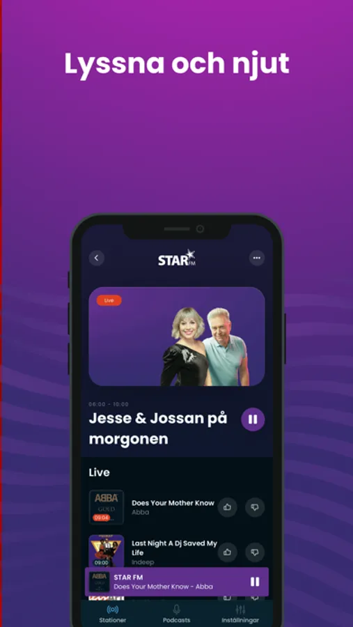 We have gathered everything from popular stations like RIX FM, Lugna Favoriter, Bandit Rock, and Power Hit Radio to tailor-made stations like Disco54, HitMix90s, Julkanalen, Svenska Favoriter, Bandit Metal, Bandit Classics, Indie 101, Dansbandsfavoriter, Country Classics, and more.