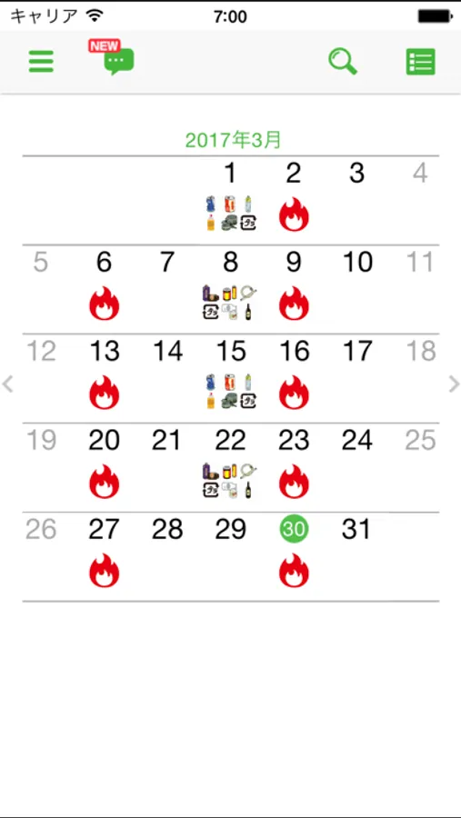 今日と明日、週、月の3パターンによるごみ収集日程を一つの画面ですぐに確認することができます。