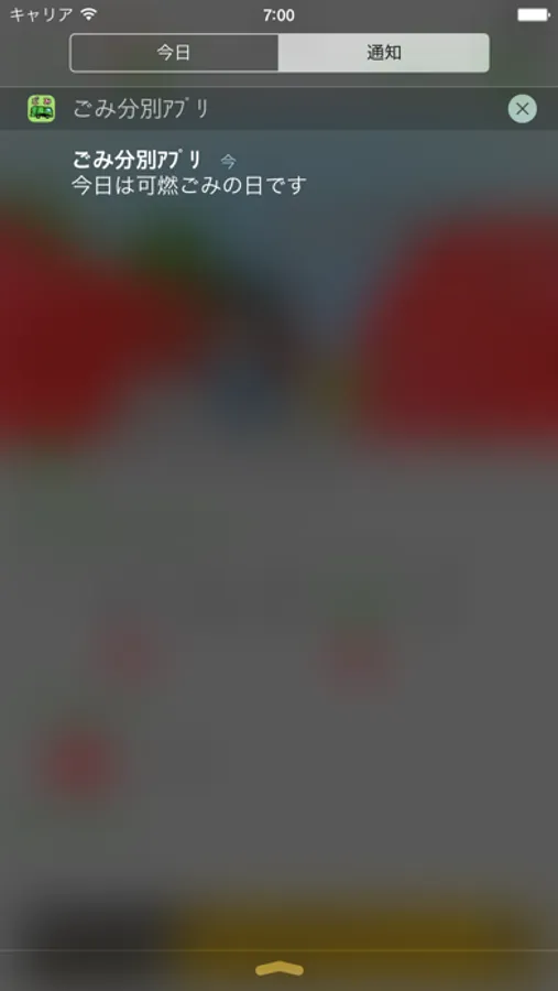 収集予定のごみの種類を前日と当日にアラートでお知らせします。時間は自由に設定することができます。
