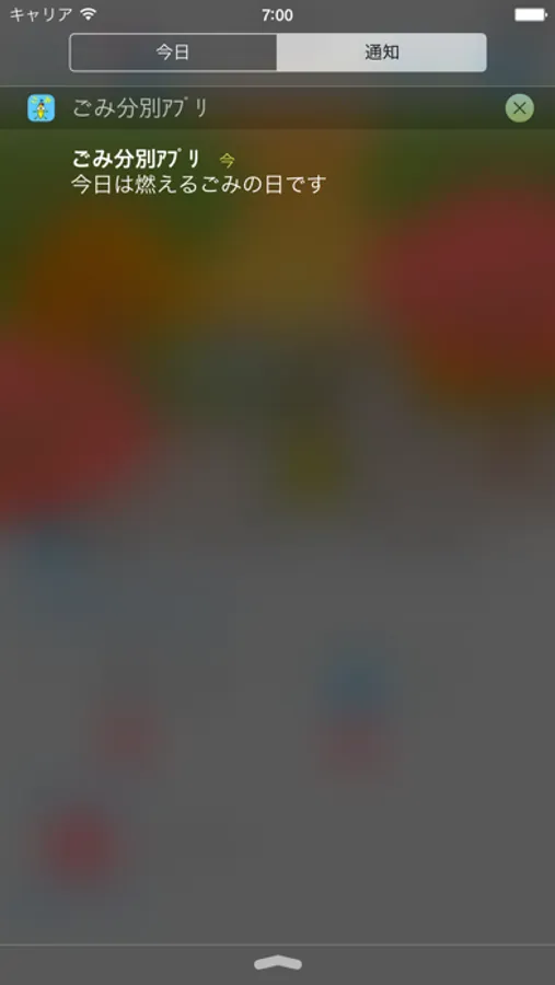 収集予定のごみ種別を前日と当日にアラートでお知らせします。時間は自由に設定することができます。