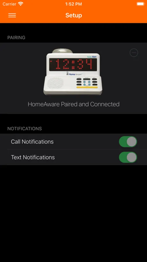 • Receive alerts on your HomeAware from your iOS device (incoming call and text)