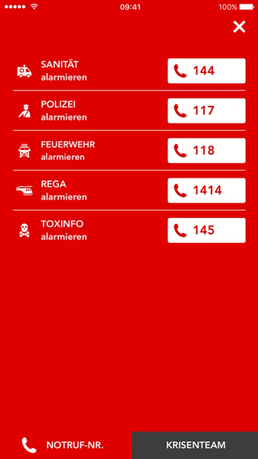 • Direkt wählbare Notrufnummern der Blaulichtorganisationen (Polizei, Feuerwehr, Rettungsdienst usw.)