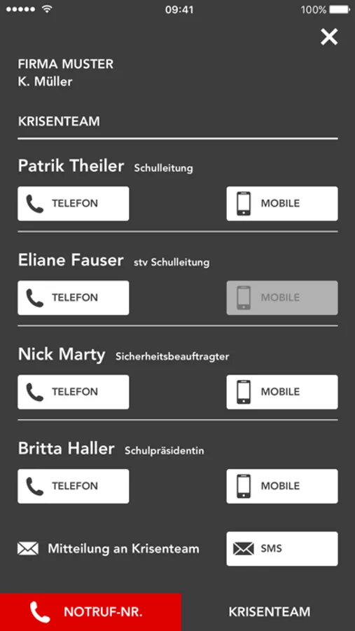 • bei Ausflügen, Reisen usw. die im Notfall vor Ort wichtigen Rufnummern in der App speichern und so ein «auswärtiges Krisenteam» zusammenstellen