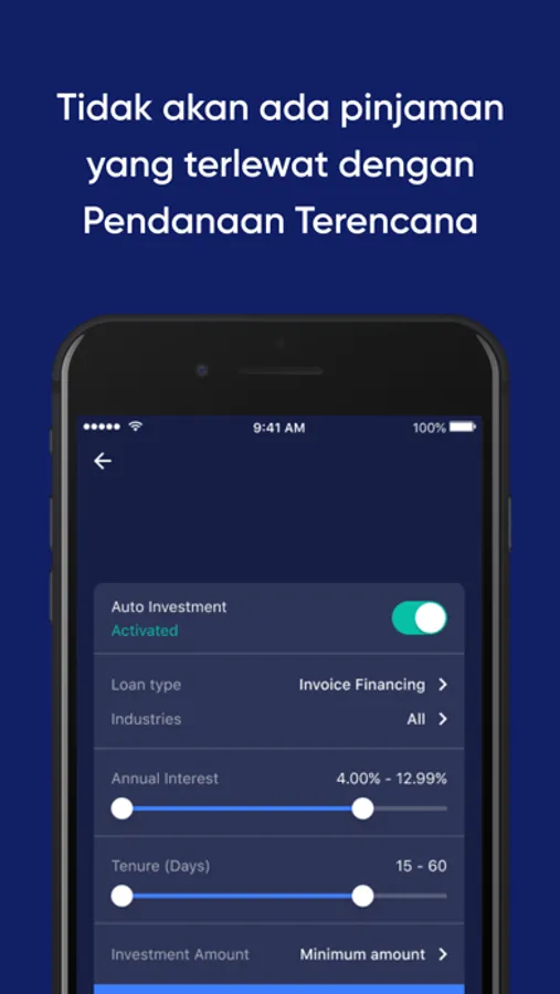 We charge one simple and all inclusive fee from the total interest earned. Investors only pay the service fee when they receive their repayments from the SMEs.