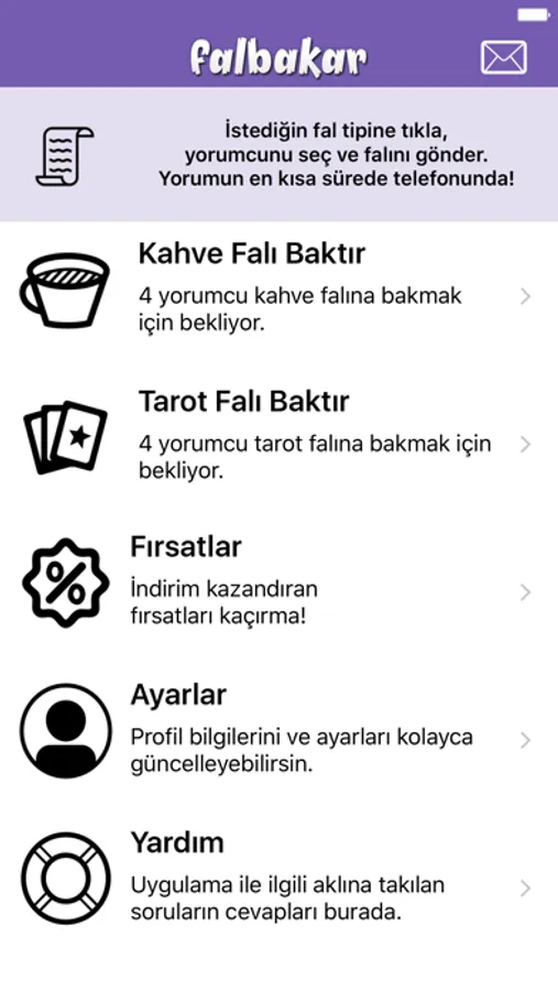 - Yorumcular çevrimdışı veya meşgul olsa bile fal gönderebilirsiniz