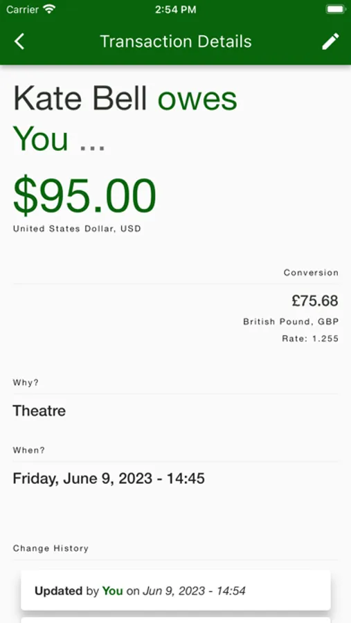 - Your friends can also add/edit debts - contributing to the ongoing tally. (Naturally it is in their best interest to keep it up to date).