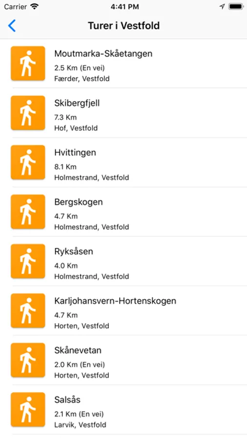 Appen har turkart med mange turstier, det er også lagt inn en del turforslag i appen som kan lastes inn i kartet.