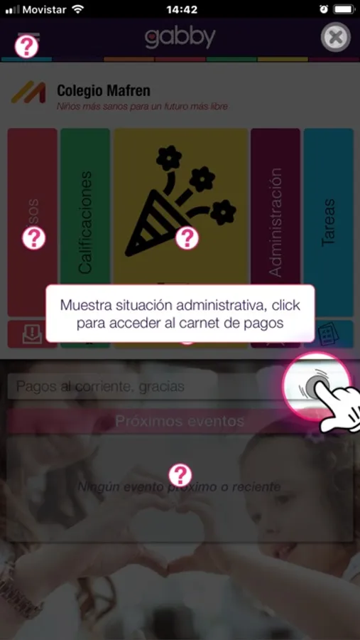Gabby es la mejor asistente personal en los temas relacionados con las actividades de tus hijos en el colegio, "ella" te mantendrá al tanto de asuntos como: Tareas, Calificaciones, Exámenes, Eventos, Pagos, Avisos generales, etc.