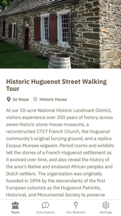 Historic Huguenot Street is a National Historic Landmark District that encompasses 30 buildings across 10 acres at the heart of the original Huguenot settlement in New Paltz, NY. The street features seven historic stone houses dating to the 18th century, a reconstructed 1717 Huguenot church, archaeological sites, and a burial ground that dates to the very first settlers.