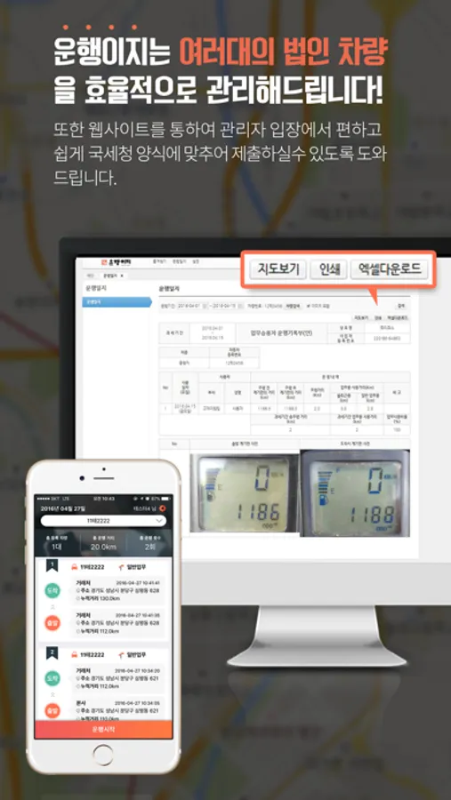 *** 차량 운행후 기록 관리가 어려우시다구요. 저희 운행이지는 관리자용 웹서비스를 제공하여 쉽고 편하게 차량 운행일지를 관리 하실수 있습니다.