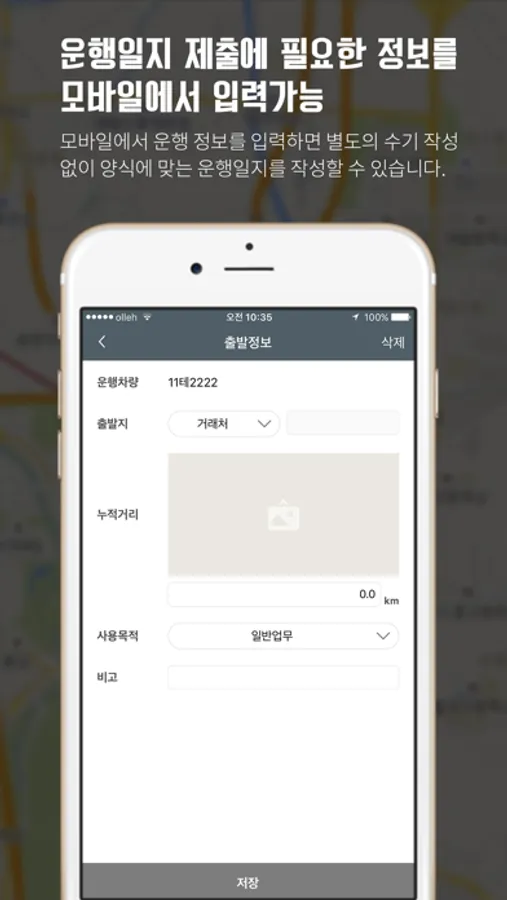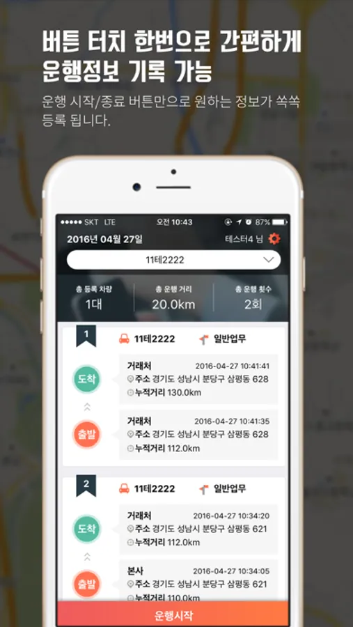 *** 차량운행일지 자동화가 어렵다구요? 저희 운행이지는 다릅니다. 시작, 종료 버튼입력 만으로 원하는 정보가 쏙쏙 등록 됩니다.