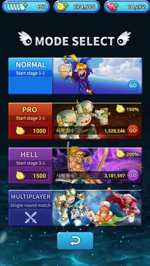 - Touch skill button for long: Fires long distance attack by using the gauge collected on the top.