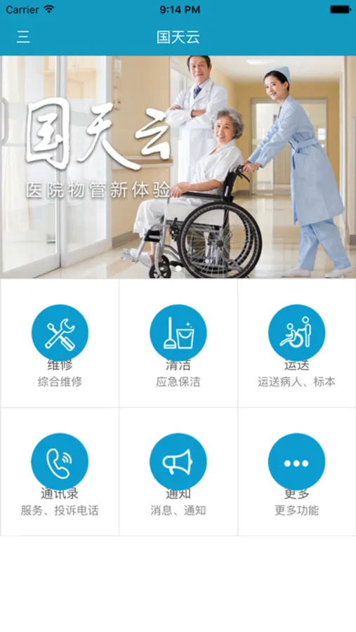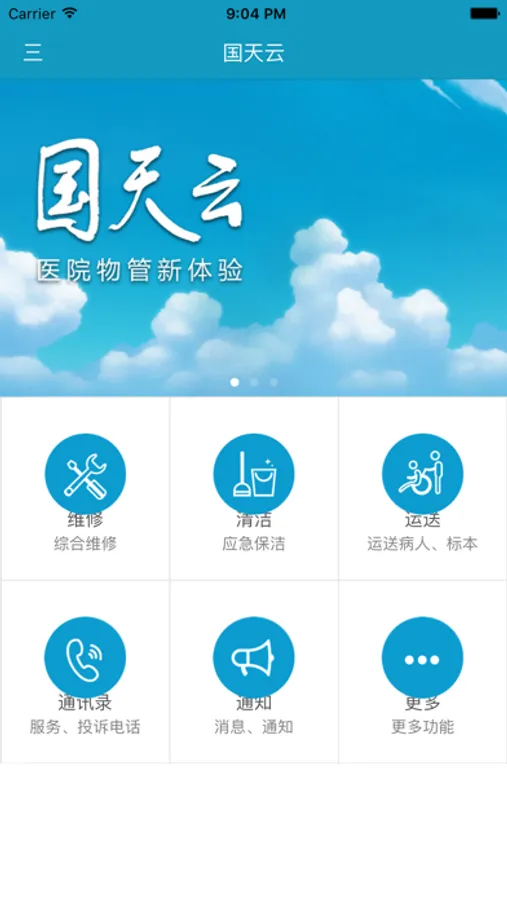 任何医生、护士、及相关人员,均可通过“国天云”快速进行医院常规运送、维修、清洁任务的发布。北京国天健宇物业管理发展有限公司将24小时值守并第一时间完成相关工作任务的调度、分配。