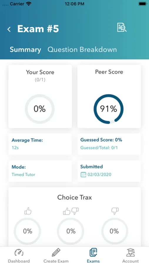 Review exams: review previous exams to see how you did compared to your peers in score and time (for individual questions and the entire exam).