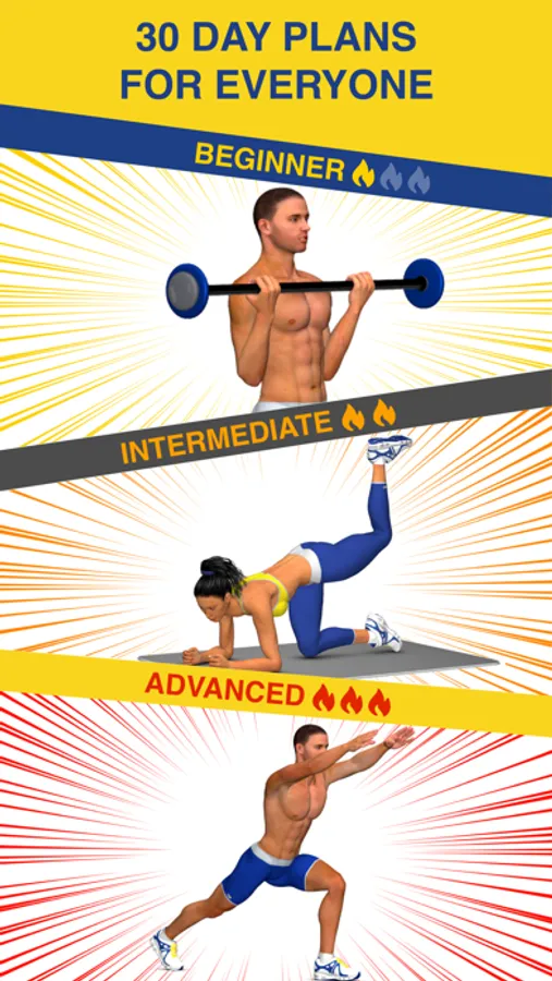 Every exercise includes a description, instructions and a 3D preview of the movement in order to be able to perform the workout in the best way.