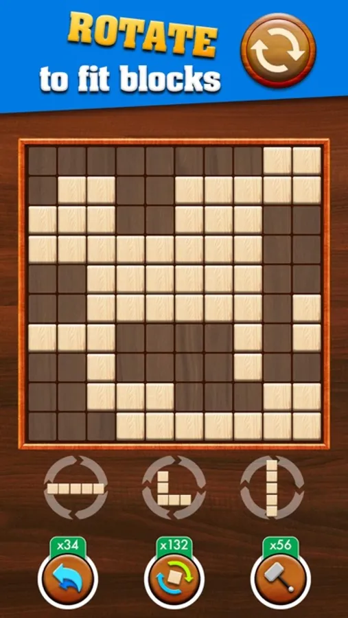 You are able to utilize in-game boosters including Hammer, Rotate, Undo to keep playing and beat the new high score.