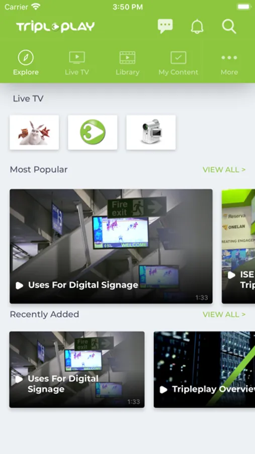 Live streams, Live TV, VOD, Upload, Secure Download, Messaging, Chat