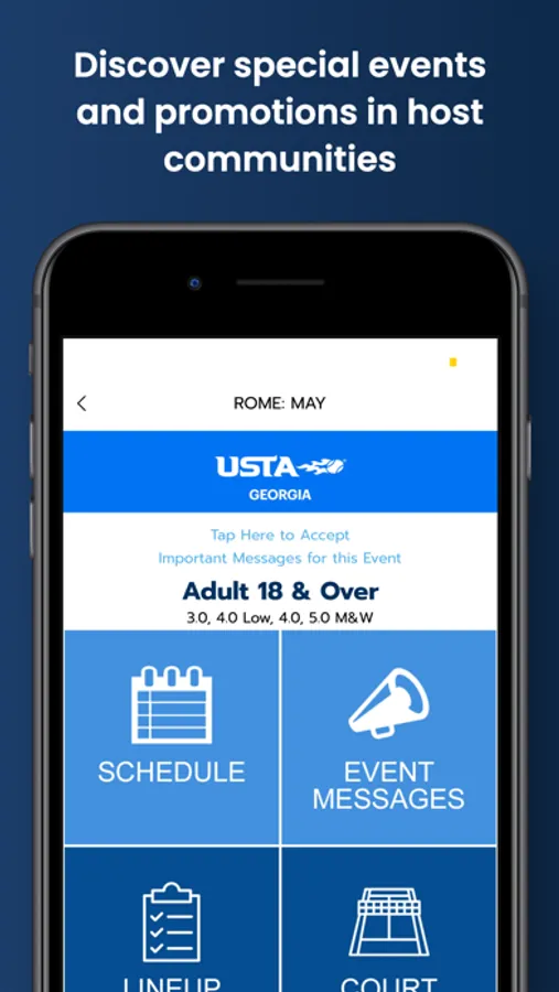 USTA Georgia’s Adult League State Championships App delivers tournament essentials, updated scoring results and GPS directions to play venues as well as other important local locations.