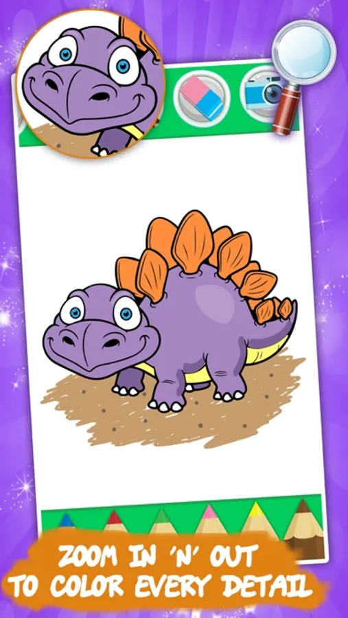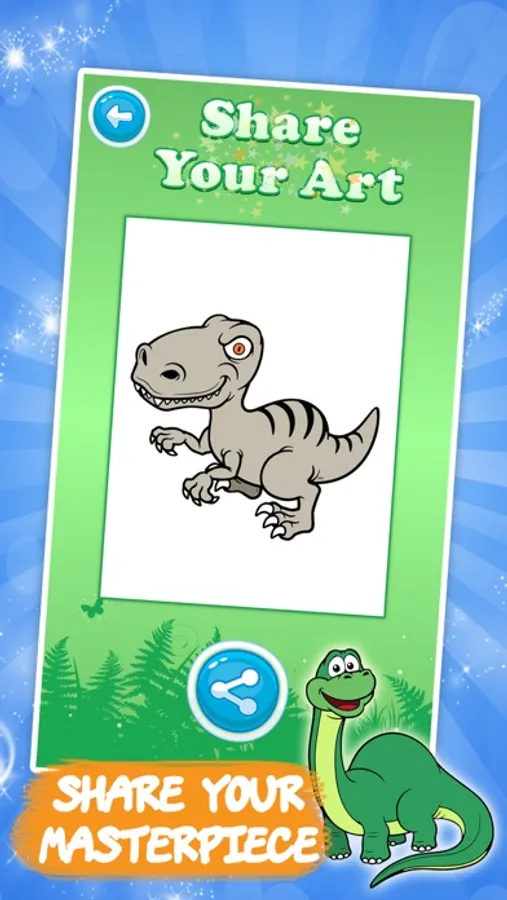 - Dinosaur colouring pages has possibility of storing images which your child drew straight to the phone's gallery