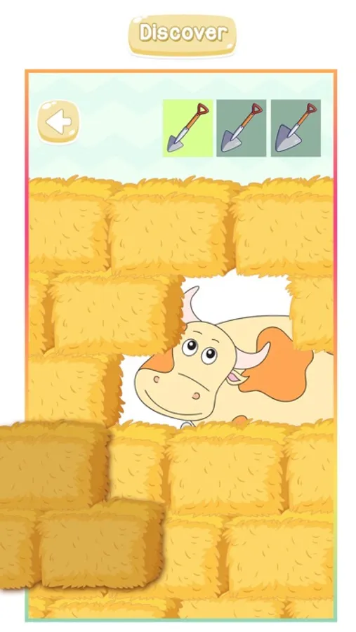 -Take the shovel and remove the straw from the barn, you will discover the animal you were looking for!