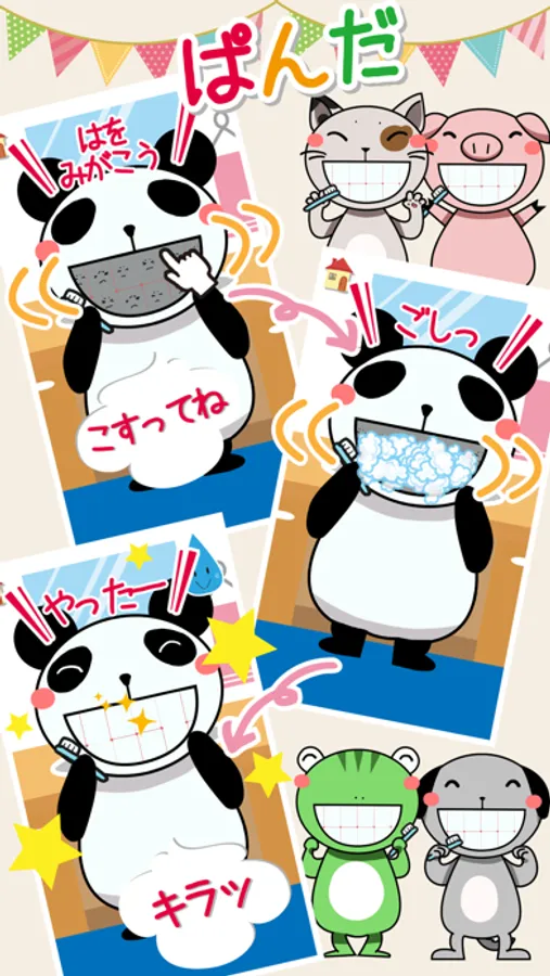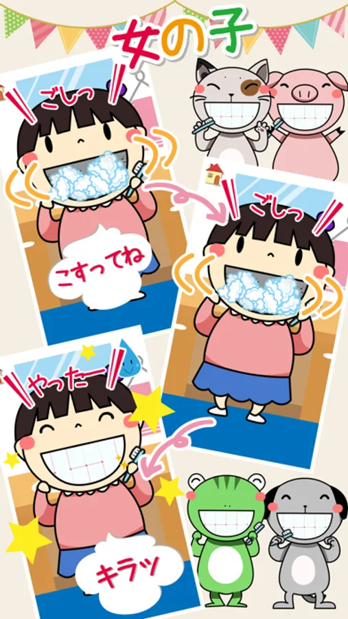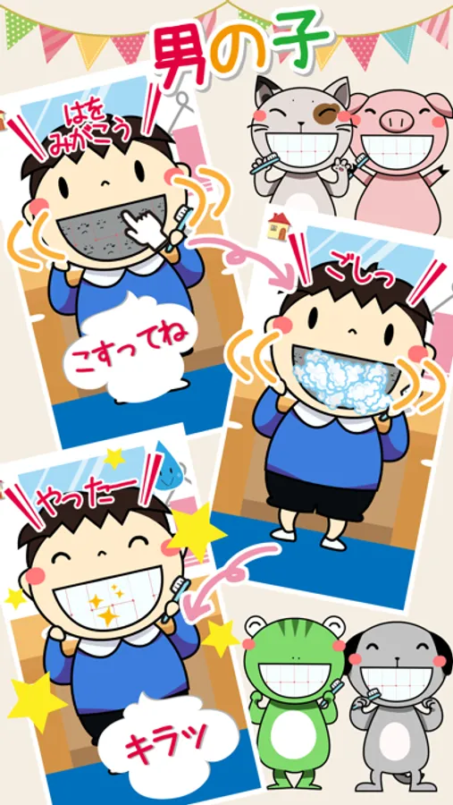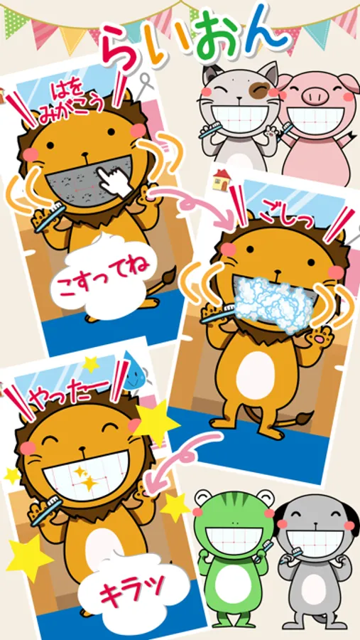 スワイプとタップで歯磨きが楽しめる知育アプリです。