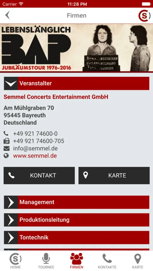 App-basiertes Tourbuch der Semmel Concerts Entertainment GmbH