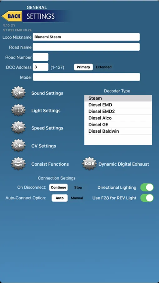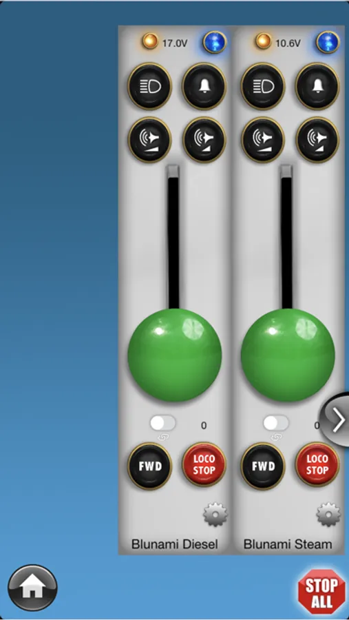 The Blunami train control app by BlueRail Trains let's you control any locomotive equipped with a SoundTraxx Blunami DCC decoder. Also works with BlueRailDCC by Tam Valley, Bachmann E-Z App and Blue Horse boards.