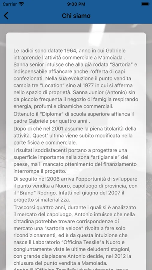 La nostra App permette di ricevere notifiche, visionare servizi e capi d'abbigliamento da noi offerti, di usufruire di coupon di sconto e fedelity card, di interagire con noi attraverso i Social Network e di contattarci per mail e/o per telefono.