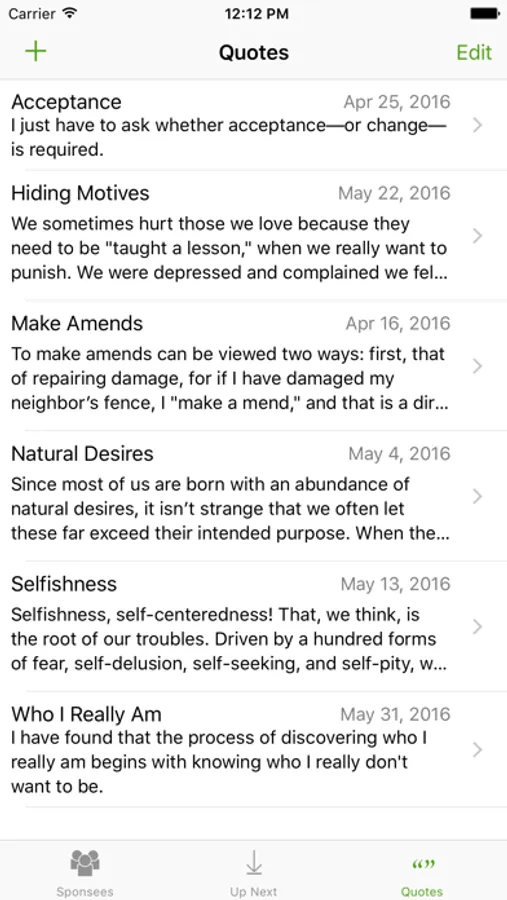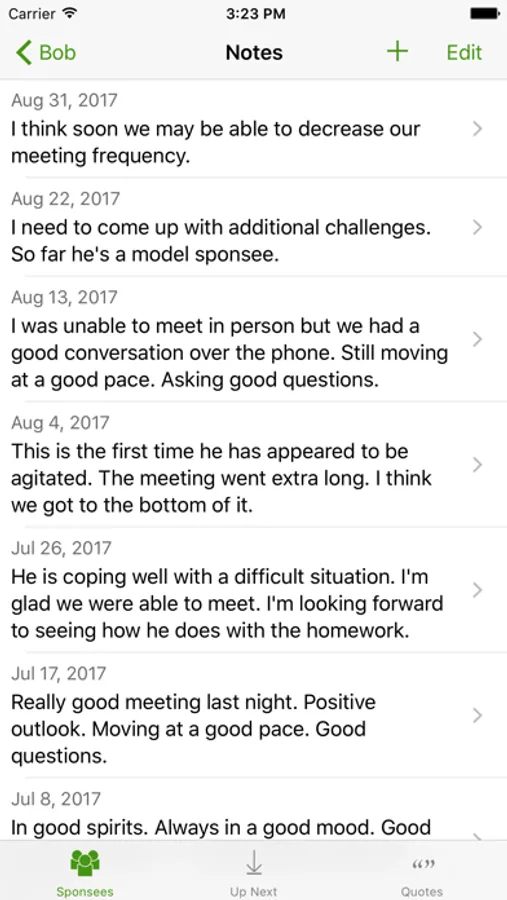 Sponseez. Like the name says if you are a sponsor mentoring sponsees through a recovery program, this app is for you. Have you been looking for an app that can help you be a more effective sponsor? One that securely lists your sponsees in one place, tracks important dates, lets you create notes, appointments, and assignments? An app that quickly lets you know what’s coming next? Look no further.