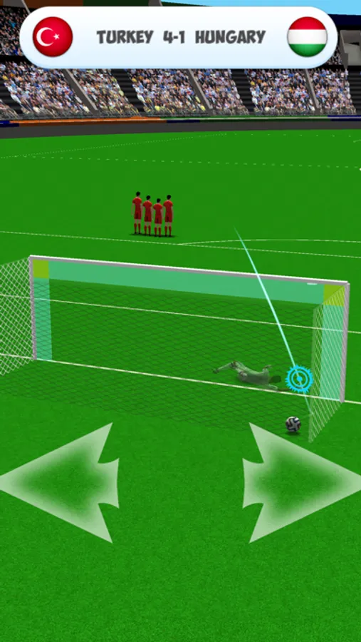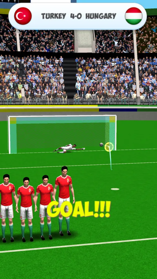Swipe your finger to curve the ball and shoot. When you are goalkeeper, move left or right for save the ball.