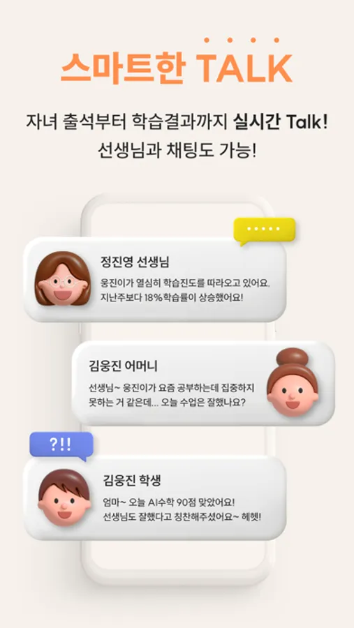 3) 부모와 자녀, 그리고 선생님과 라운지에서 바로 소통하는 재미를 느껴보세요.