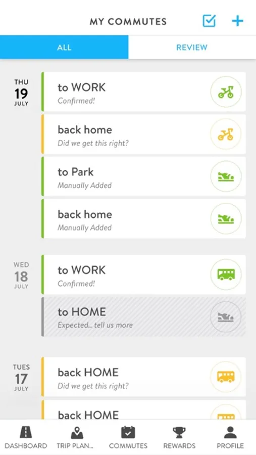 Confirm: Confirm or manage trips to keep your history up-to-date.