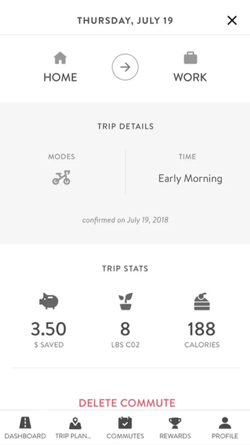 Earn: See the positive impact you’re making with your commute. Participate in challenges, earn commuter incentives, and redeem points for rewards and benefits like emergency rides home.