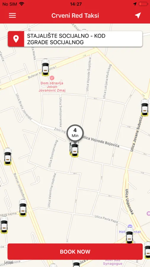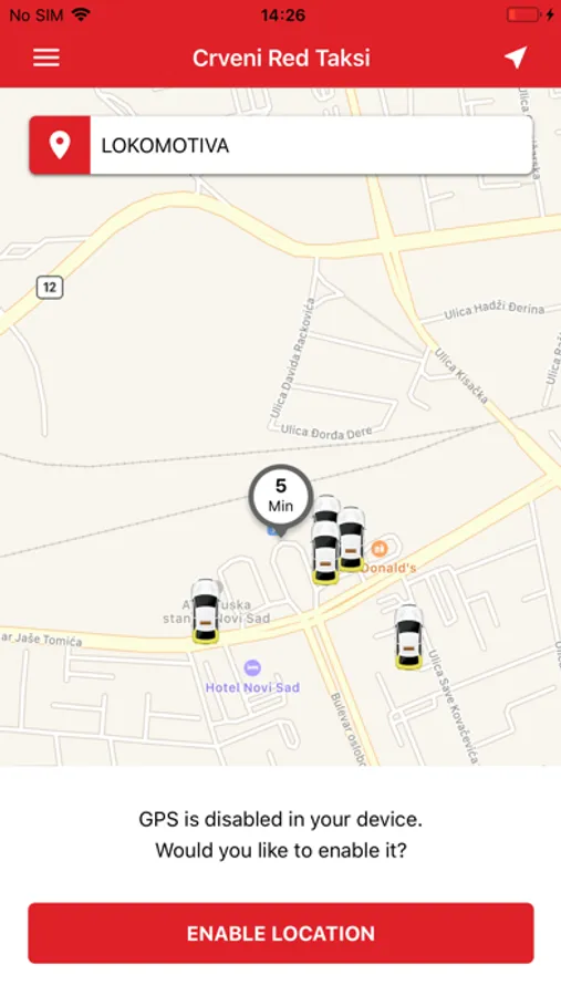 - Crveni i Red taxi će automatski locirati vašu adresu koristeći GPS u Vašem uredjaju