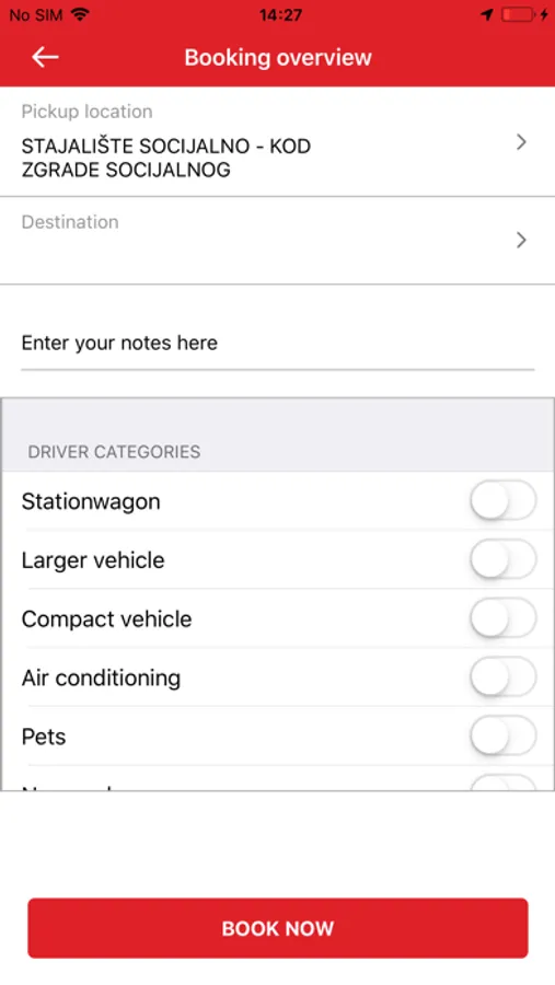 - Možete da odredite broj putnika, tip vozila (karavan), prevoz kućnih ljubimaca...