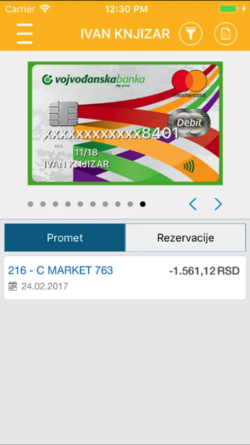 - Pregled stanja i prometa po MasterCard prepaid kartice (status, stanje, pregled transakcija, i promet)