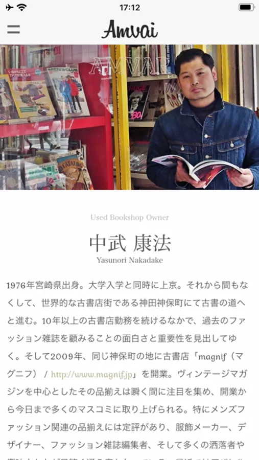 The man who have “Just”, change to the normal view from "REVIEW" and "STORY" of “amvai”.