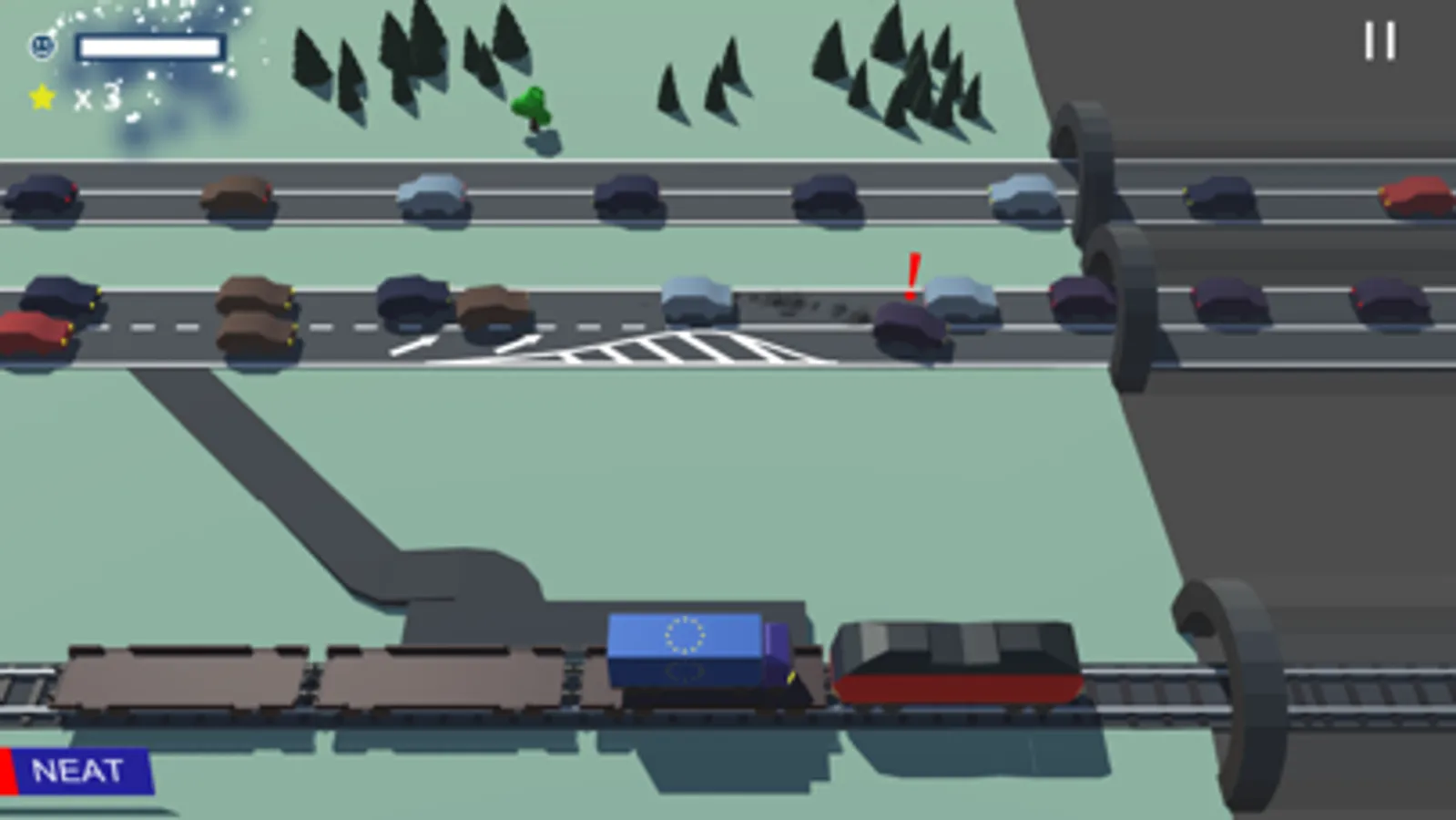 Der Spieler muss die auf dem Pannenstreifen überholenden Autos antippen und die EU-Lastwagen auf die NEAT verladen. Das Spiel endet bei einer zu hohen Luftverschmutzung.