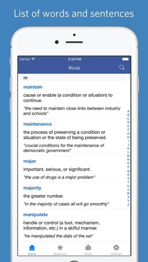 - Each word comes with its synonym, antonym and origin so that you can easily remember its meaning and expand your vocabulary