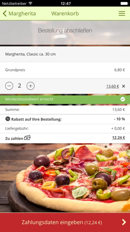 Original italienische Gerichte und Spezialitäten werden mit den besten Zutaten frisch zubereitet. Wir bieten eine große Auswahl an wohlschmeckenden Speisen. Ob mit Fleisch oder vegetarisch – es ist für jeden Geschmack das Richtige dabei. Große Portionen sorgen dafür, dass Sie von dem leckeren Essen auch richtig satt werden.