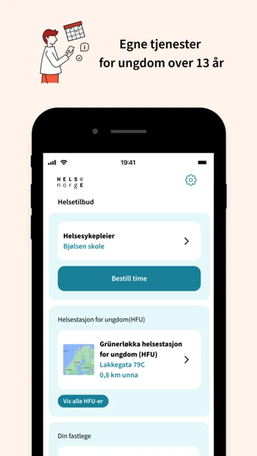 Mange har tjenester fra fastlegen sin på Helsenorge, som timebestilling, e-konsultasjon og reseptfornyelse. Hvis du skal eller har vært innlagt på enkelte sykehus i Norge, kan du se timer, henvisninger og ha innsyn i journalen din. Du kan søke om refusjon ved pasientreiser, sjekke frikort og egenandeler, og se en oversikt over koronaprøvesvar, resepter, legemidler og vaksiner du har tatt. På Helsenorge kan du også se hva kjernejournalen din inneholder. Du finner også flere nyttige kurs og verktøy som kan hjelpe deg å mestre din helse- og livssituasjon.