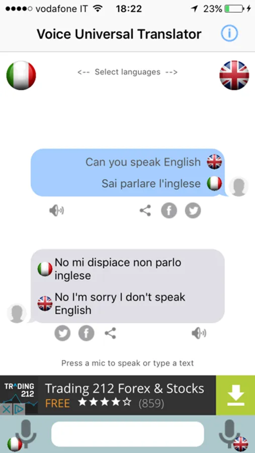 7) You can share the translated text with facebook, twitter, whatsapp and other apps
