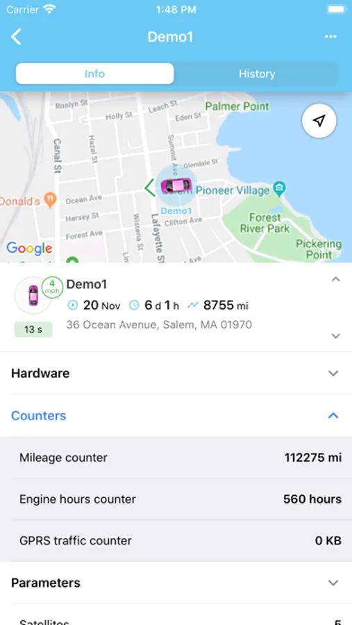 Alert notifications will bring you the latest information over the vehicle’s violations and geofence trespassing.