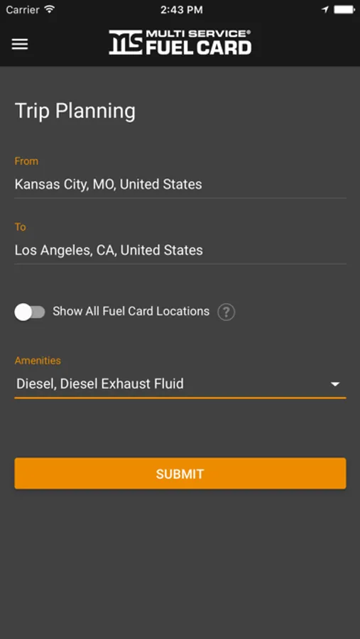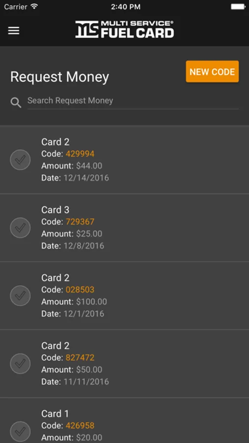A state of the art mobile application powered by Multi Service Technology Solutions helps fleet operators manage their fuel cards right from their mobile device. Fleet Operators will enjoy the visibility of card activity as well as creating InstaMoney codes right from their mobile device. The drivers will have instant access to our more that 5000 merchant locations with the state of the art map features.