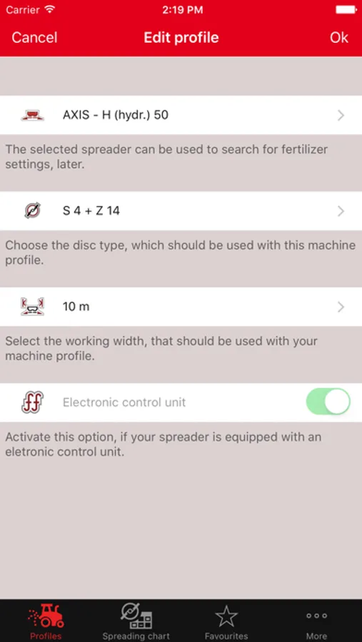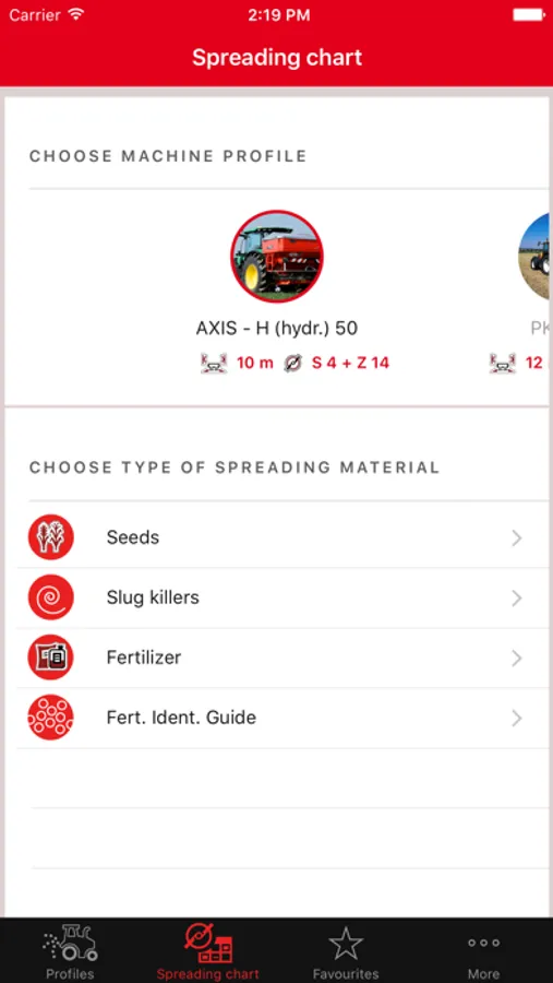 For increased fertilizer spreading efficiency, KUHN has developed an application to assist you in the fertilizer spreader adjustments. Considering the multitude of fertilizers available on the market, it is essential to identify and select the right fertilizer in the spreading charts. This application will guide you through the settings to use for spreading the right dose and obtaining a good lateral distribution.