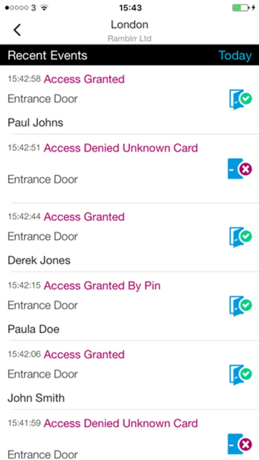 Customer Features: You can view the status of doors, lock and unlock doors, view video footage associated with access events or alarms, enable and disable cardholders and view a list of all the cardholders currently on a site, from the app. Login to www.act365.eu for more features and functionality.