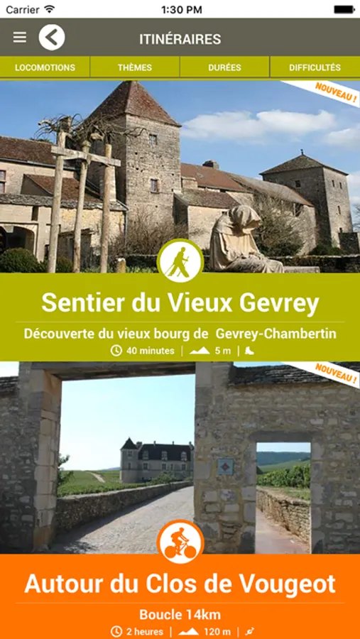 With the application "Côte Dijonnaise", quickly visualize all the circuits of discoveries on the territory around Gevrey-Chambertin, the South from Dijon to Nuits-Saint-Georges.