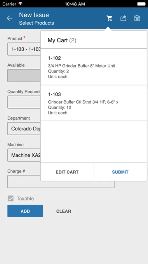 • Online only mode – allows for user with internet access to walk away from the office and use a mobile device to issue and return products, enter cycle counts, enter purchase order receiving and/or to locate a product in the warehouse